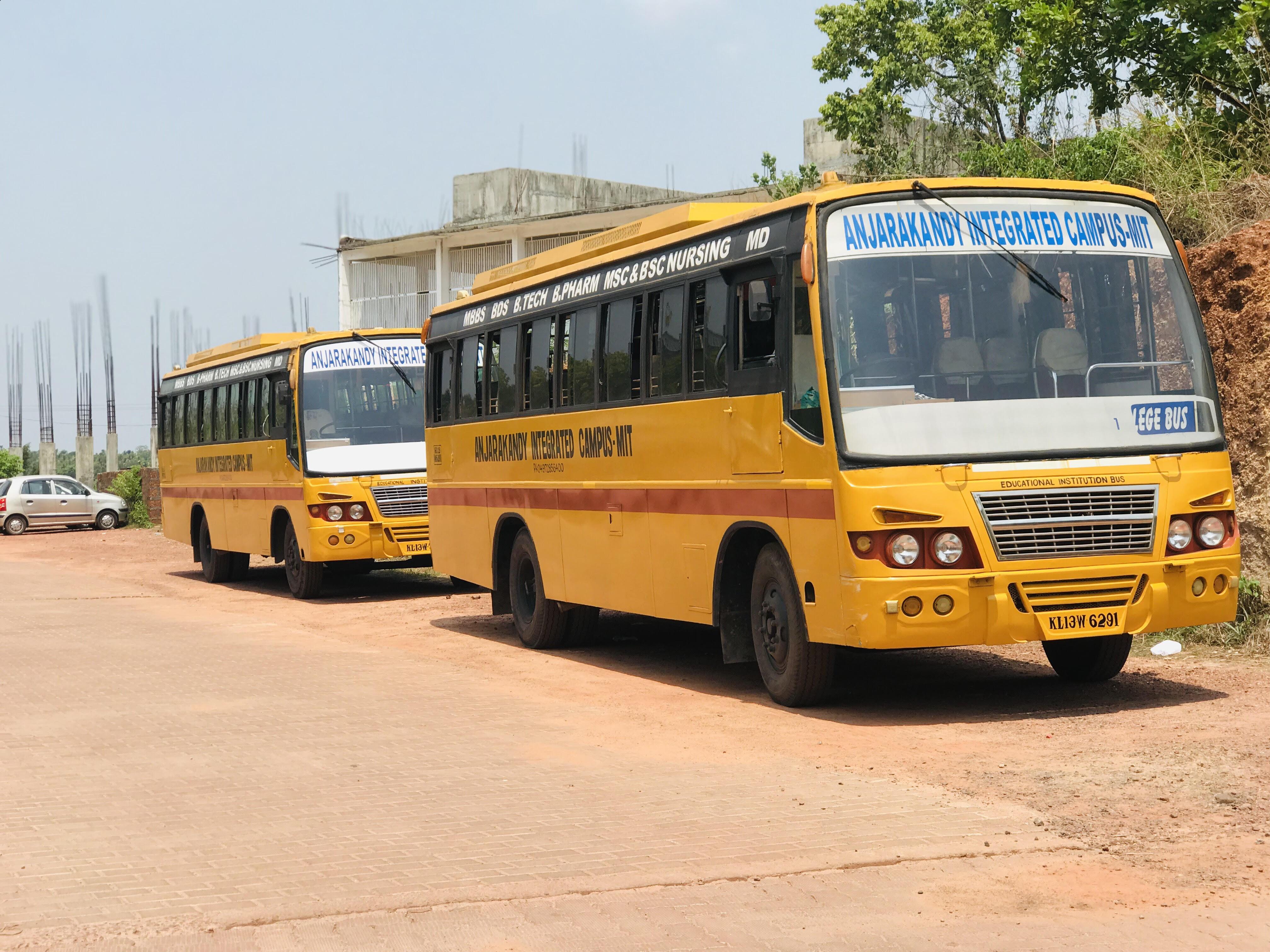 The College has its own transport infrastructure to provide convenient transportation for the day-scholars from nearby areas. Both the students and staffs can use the prepaid facility of transportation. The campus being1 Kms from Anjarakandy town , the college provides transportation facility for both students and staff. There are 6 buses which take care of commutation of about six hundred students from various locations.